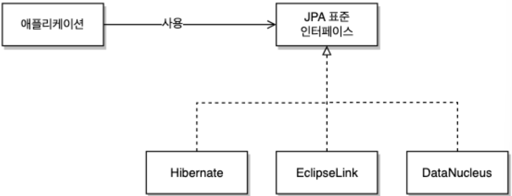 - 데이터베이스를 쉽게 다루기 위한 '데이터 액세스 기술'로 ORM 기법을 사용하여 자바 애플리케이션에서 사용하는 객체와 관계형 데이터베이 사이의 매핑을 관리하는 ORM 기술에 대한 API 표준 명세서(인터페이스)를 의미한다.