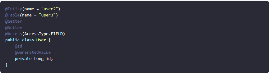위 코드처럼 @Id가 필드에 설정되면 @Access(Access(AccessType.FILED)로 설ㅌ정된 아래 코드랑 같다.