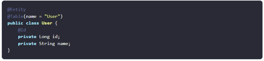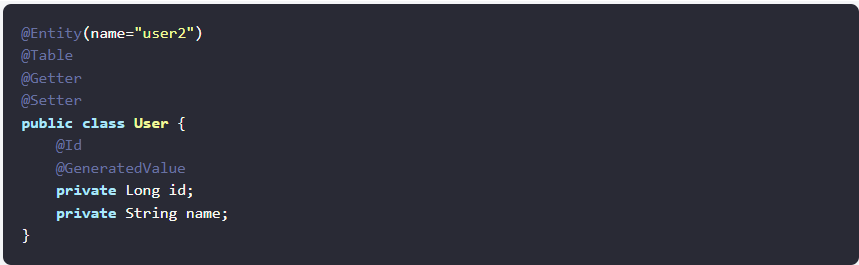 @Entity 어노테이션은 JPA를 사용해 테이블과 매핑할 클래스에 붙여주는 어노테이션이다. 이 어노테이션을 붙임으로써 JPA가 해당 클래스를 관리하게 된다.