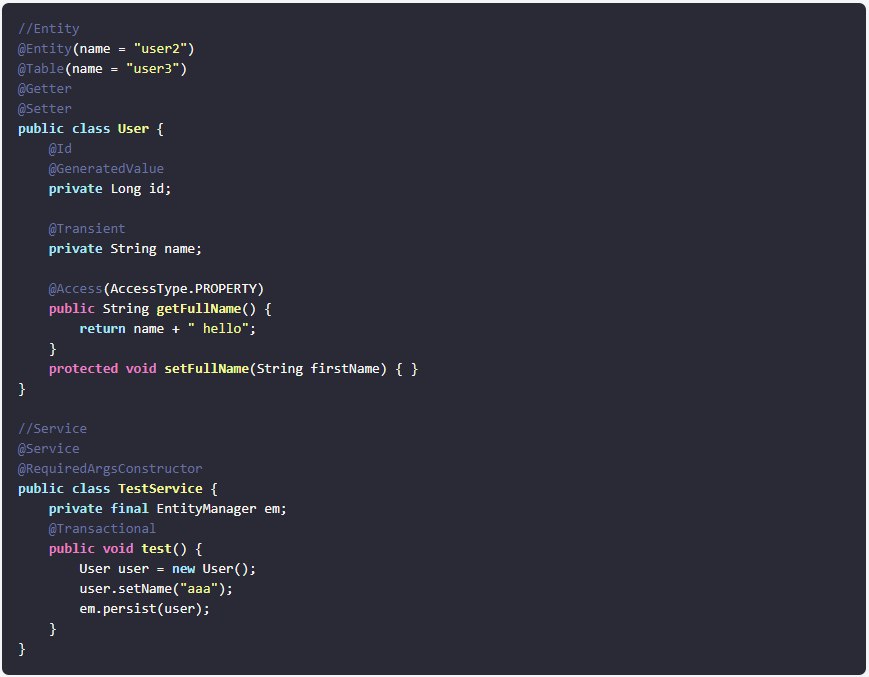 getter에 AccessType.PROPERTY를 함으로써 getter의 fullName을 column으로 지정.