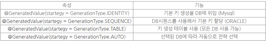 전략에는 IDENTITY, SEQUENCE, TABLE 3가지가 있다.