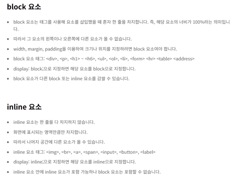 **block과 inline 요소의 개념을 잡는 것은 html 마크업 요소에서 가장 중요하다