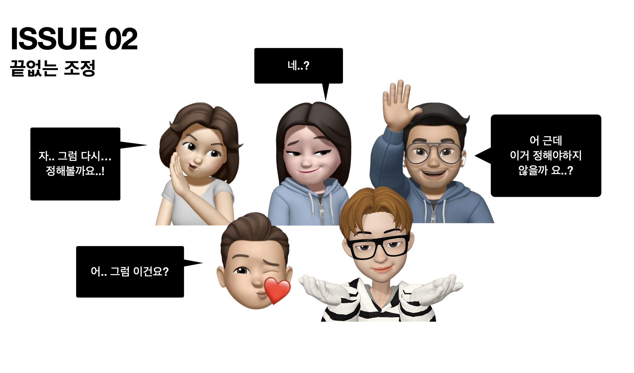 논의가 끝나면 그에 관련된 꼬리 논의 주제가 나오고 그러다보니 생각했던 시간보다 많은 시간을 논의 시간에 쏟게 된 것 같아요.