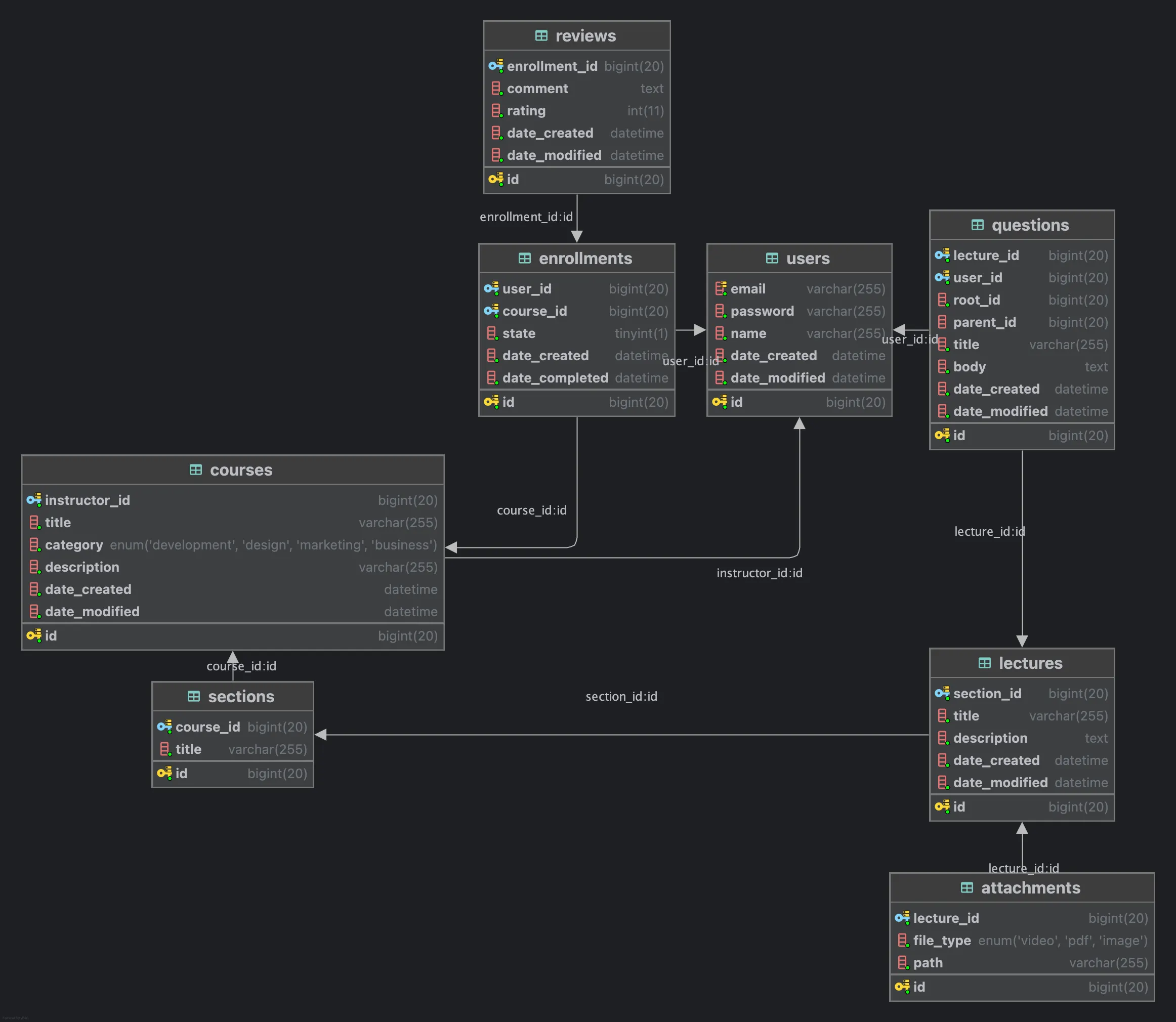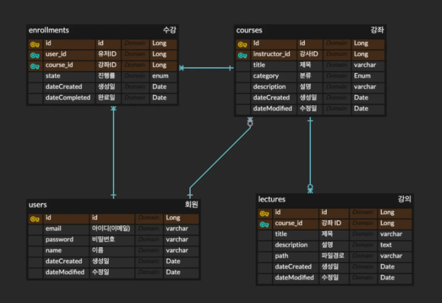 그래서 "꼭 있어야 하는 기능"을 추린 후의 최종적으로 위의 ERD가 탄생하게 되었어요!