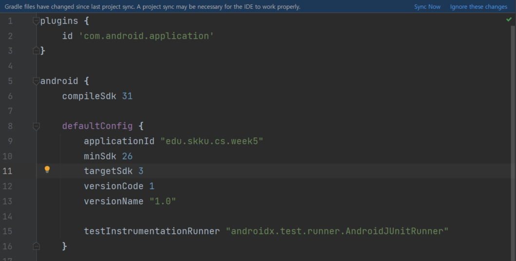 build.gradle이 2개 존재하는데 (프로젝트 수준, 앱 수준) 그 중 앱 수준을 열면 된다.