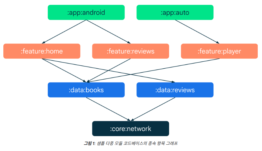 - 모듈은 사실상 구성요소의 역할을 하고, 앱은 기능의 총합으로, 각 기능은 별도 모듈 형태로 구성된다.