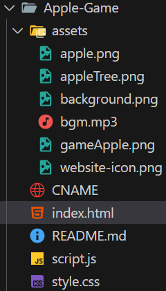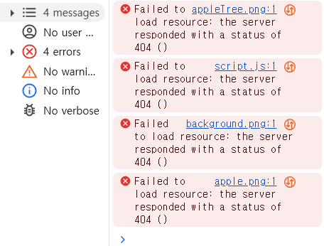 Apple-Game/assets/apple.png , assets/apple.png를 해봤었는데 404에러가 해결되지 않았었고, ./assets/apple.png로 바꾸니까 비로소 에러가 해결되었다.