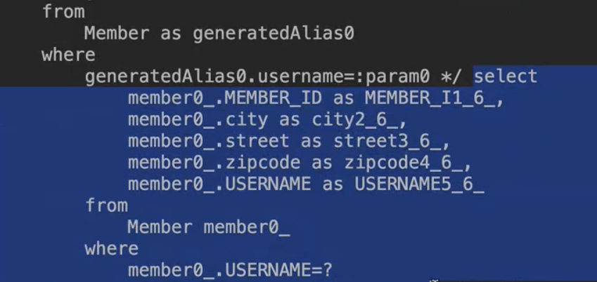 CriteriaQuery<Member> cq = query.select(m).where(cb.equal(m.get("username"), "kim"));