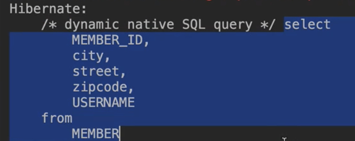 em.createNativeQuery("select MEMBER_ID, city, street, zipcode, USERNAME from MEMBER")