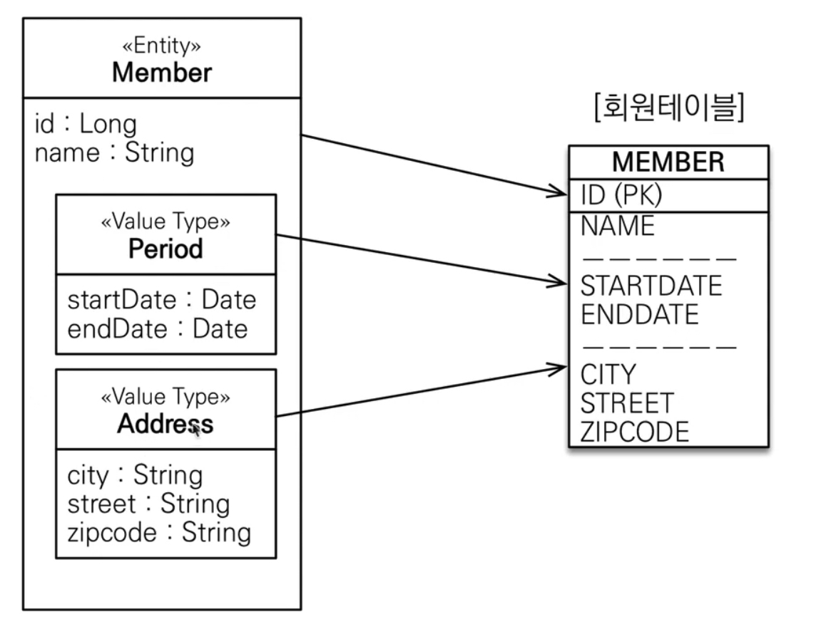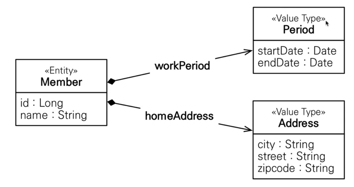 - 주로 기본 값 타입을 모아서 만들기 때문에 복합 값 타입(Composite Value)이라고도 한다.(하이버네이트 시절에)