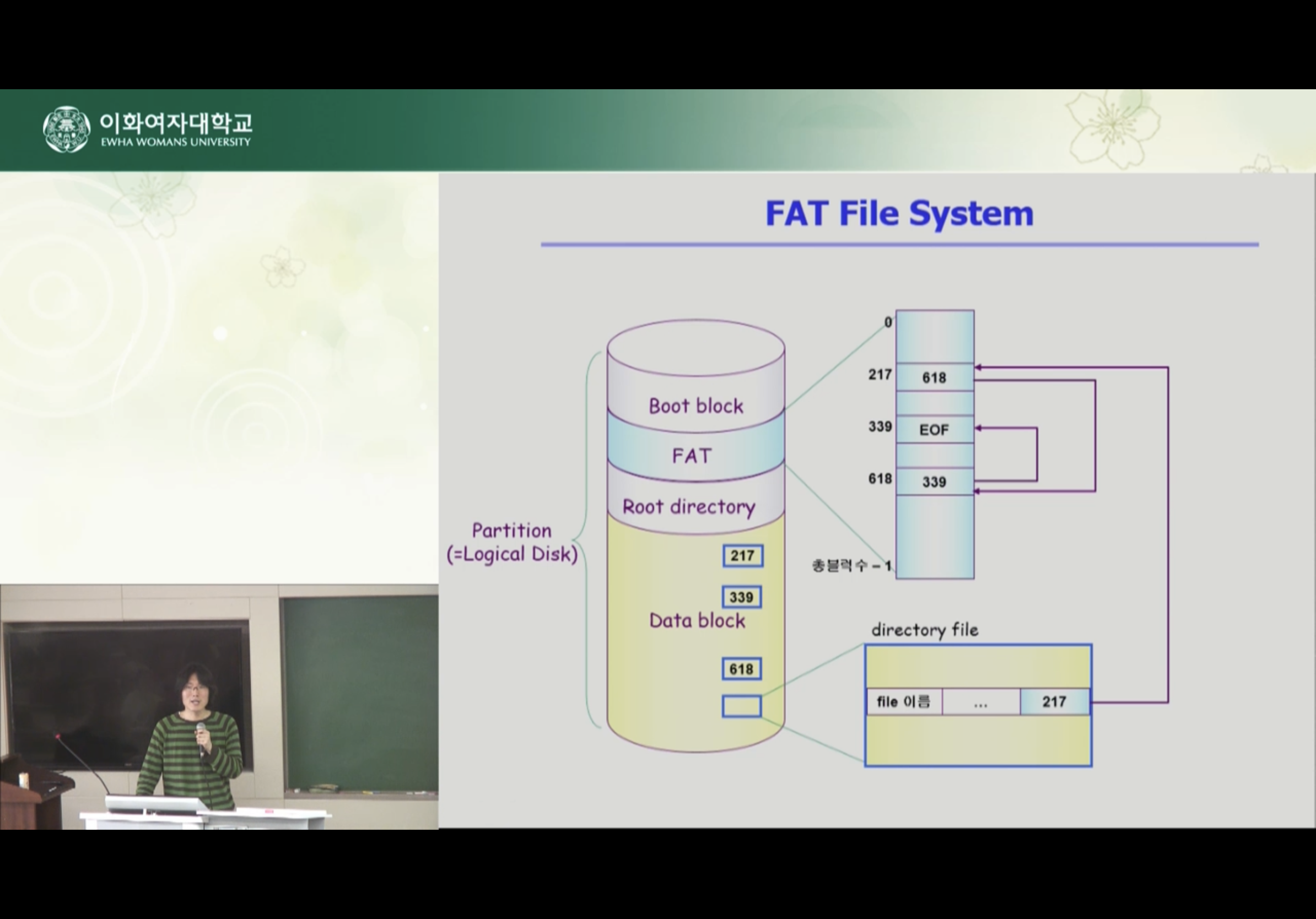 파일의 거의 모든 메타데이터를 디렉토리가 가지고 있고 FAT 영역에 다음 블럭의 위치를 가지고 있음 처음 위치는 디렉토리에 있음