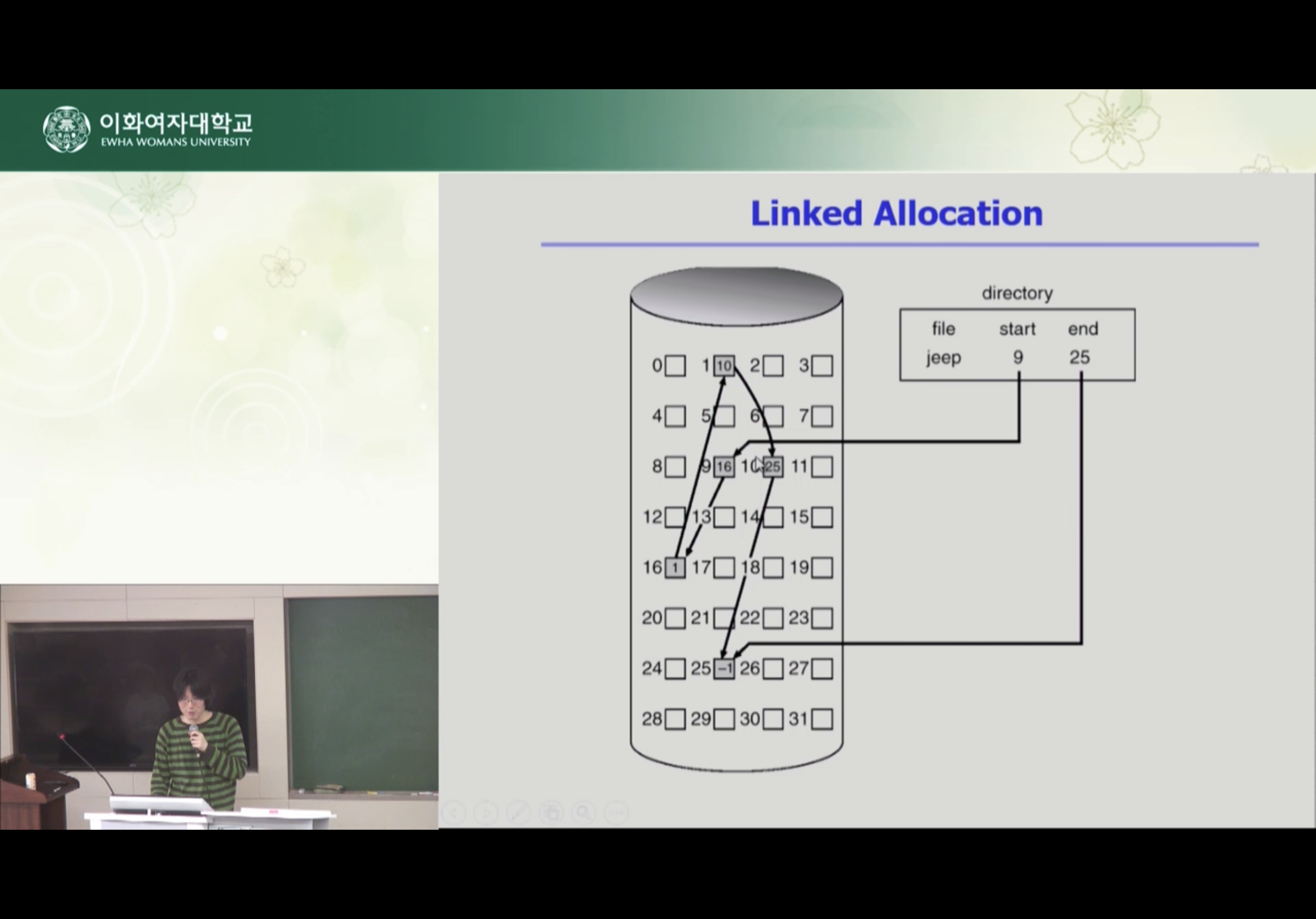 linked allocation 활용 근데 linked allocation에서는 직접 접근이 안됐는데 FAT File System에서는 직접접근이 가능하다. linked allocation의 단점들을 모두 극복.