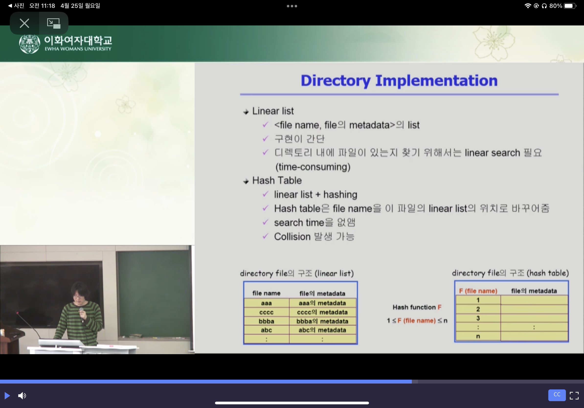 - Hash table은 file name을 이 파일의 linear list의 위치로 바꾸어 줌