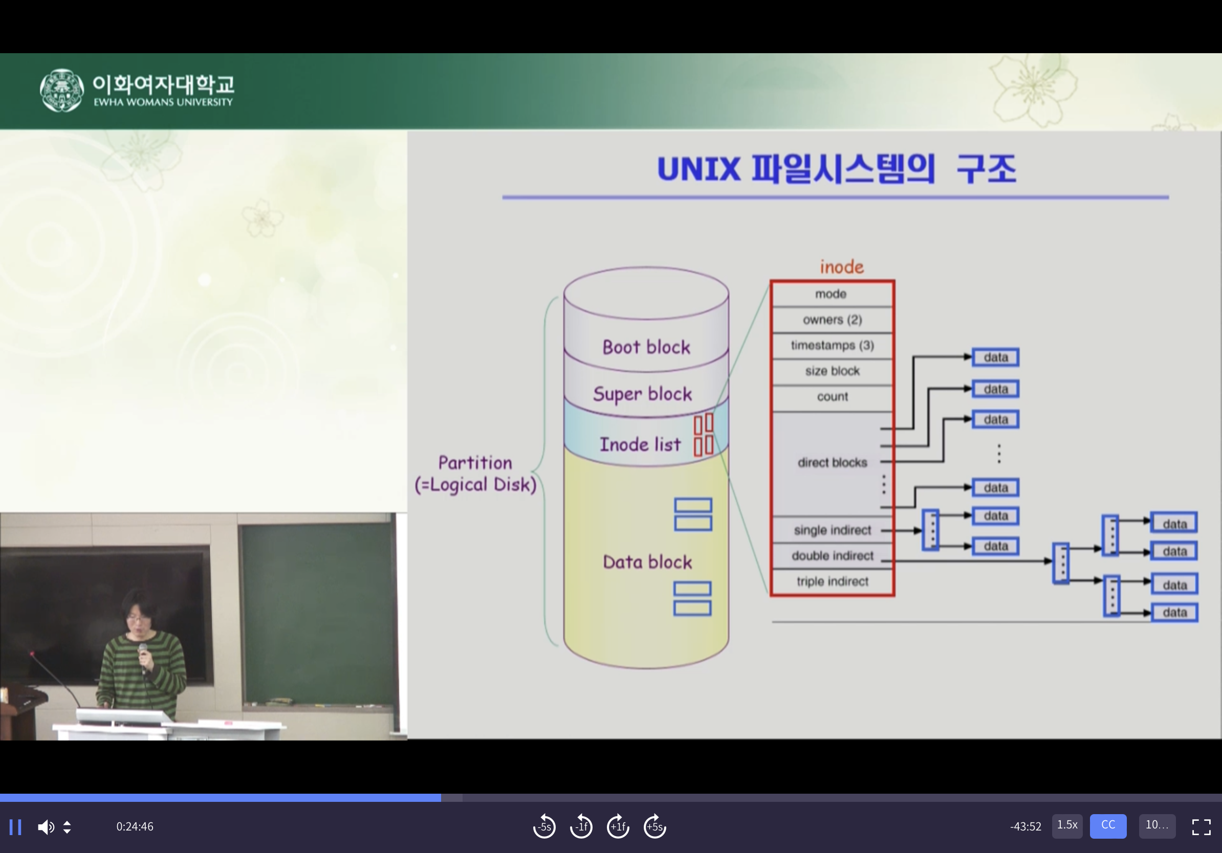 inode를 가지고 있다는게 유닉스 파일시스템의 특징이다. Indexed allocation을 아주 살짝 변형해서 사용