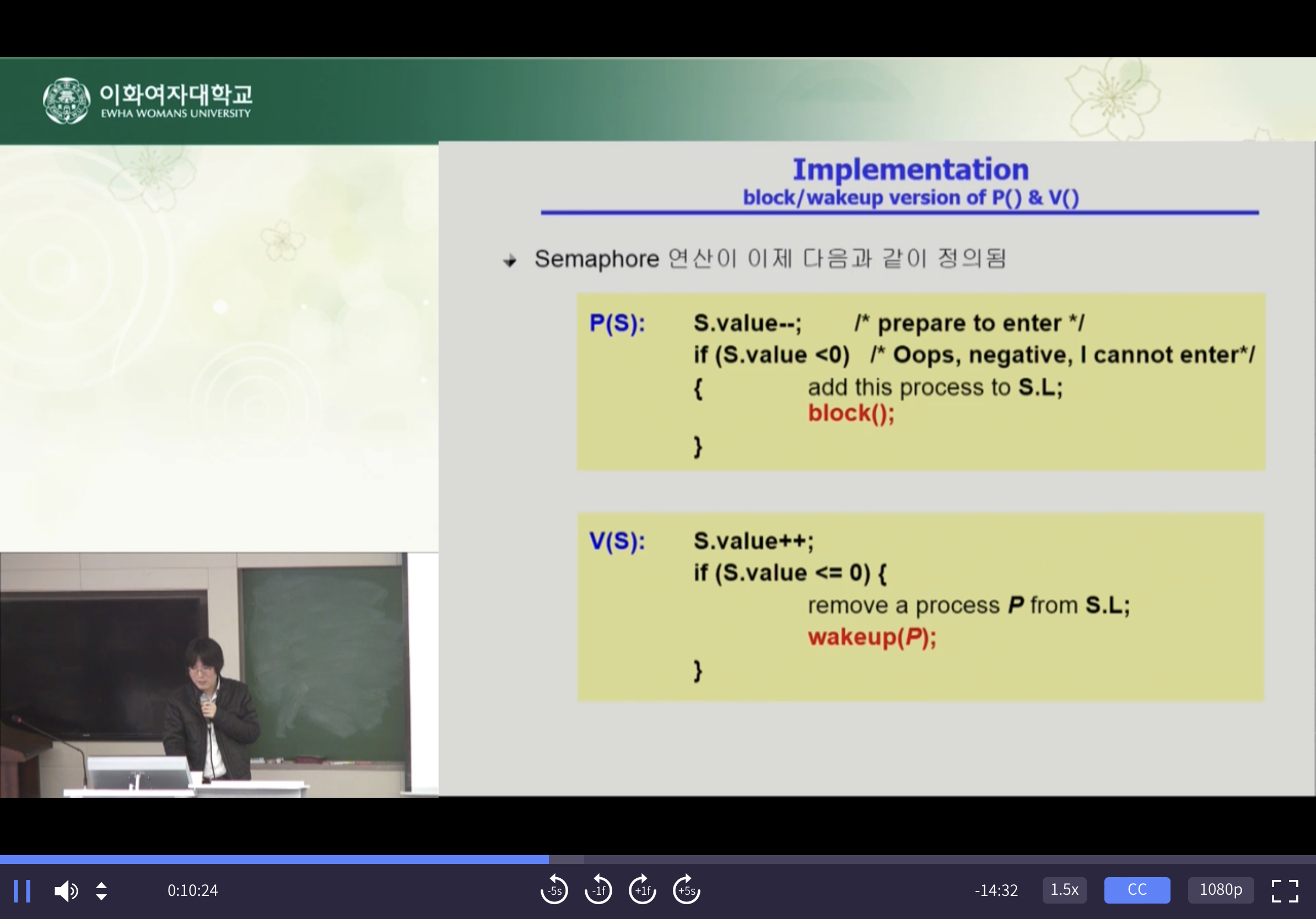 여기에서 P 연산은 세마포어를 획득하는 과정(공유 데이터를 획득) -lock
