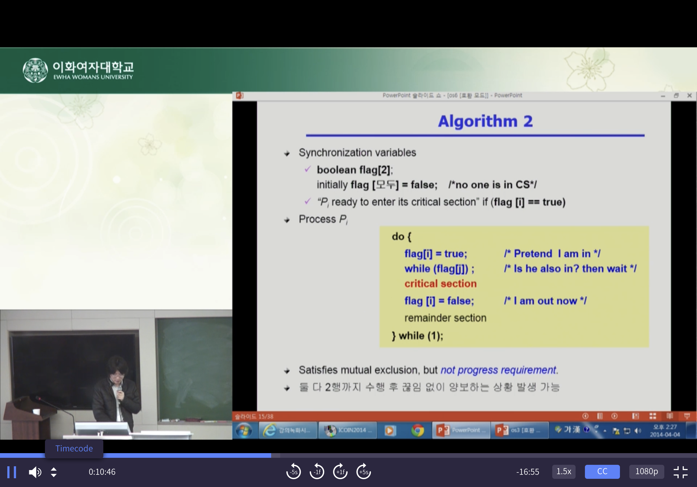 프로세스 Pi가 Critical Section부분을 수행 중이면 다른 모든 프로세스들은 그들의 Critical Section에 들어가면 안된다.