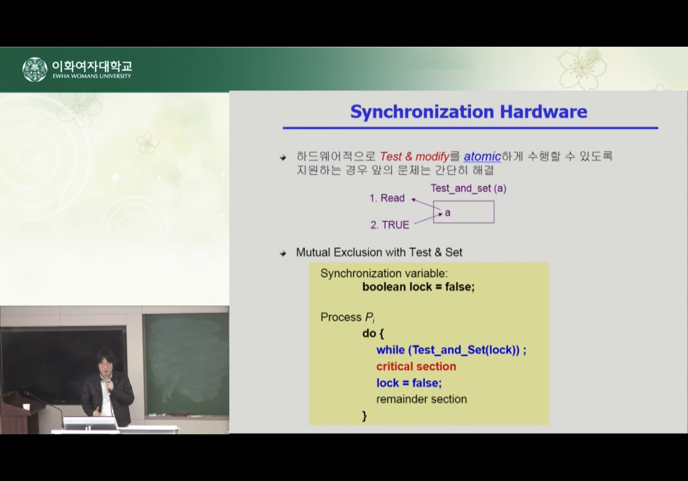 실제 하드웨어에서는 Test_and_Set이라는 자체 instruction을 제공한다.