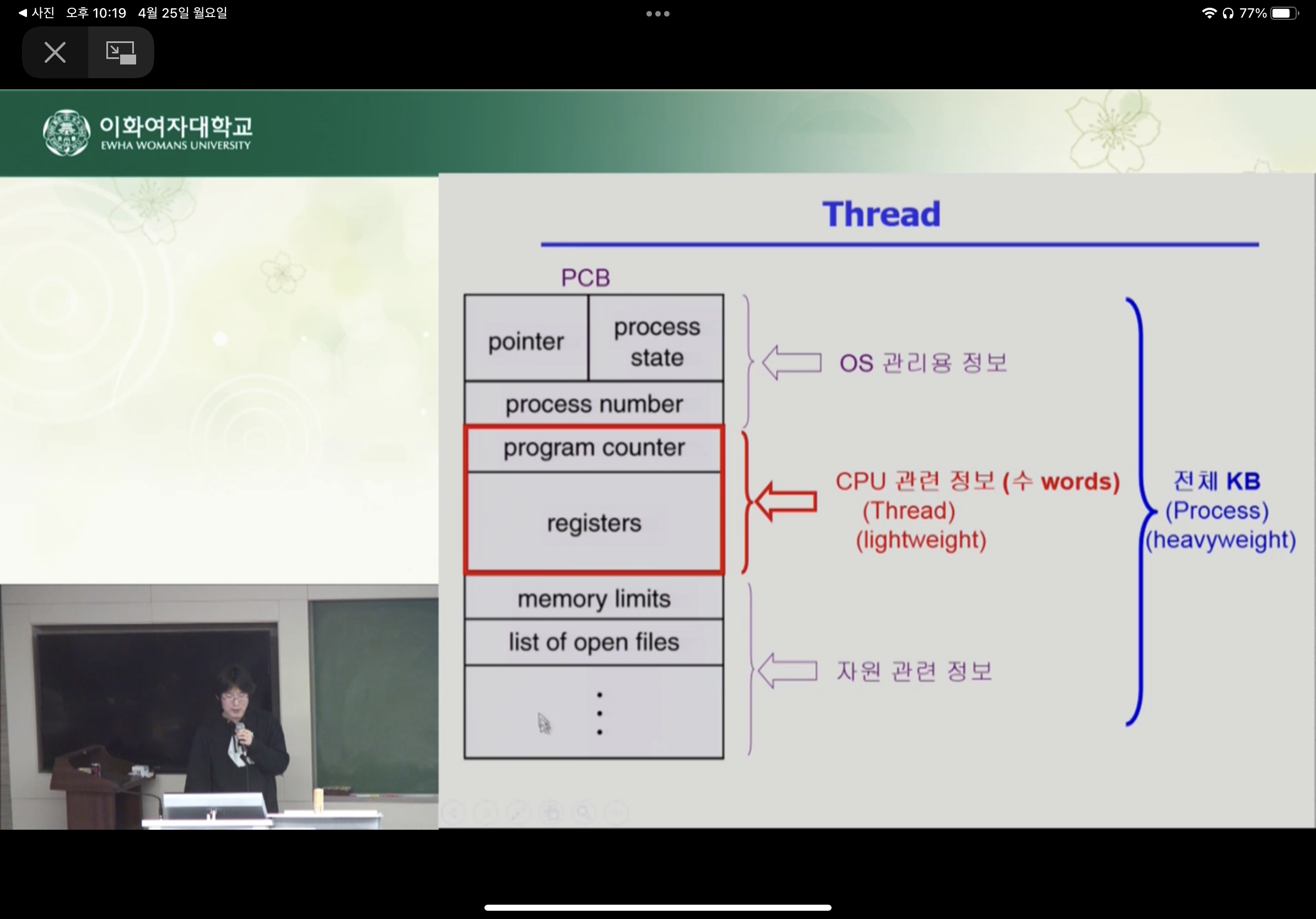 프로세스 내부에 CPU 수행 단위