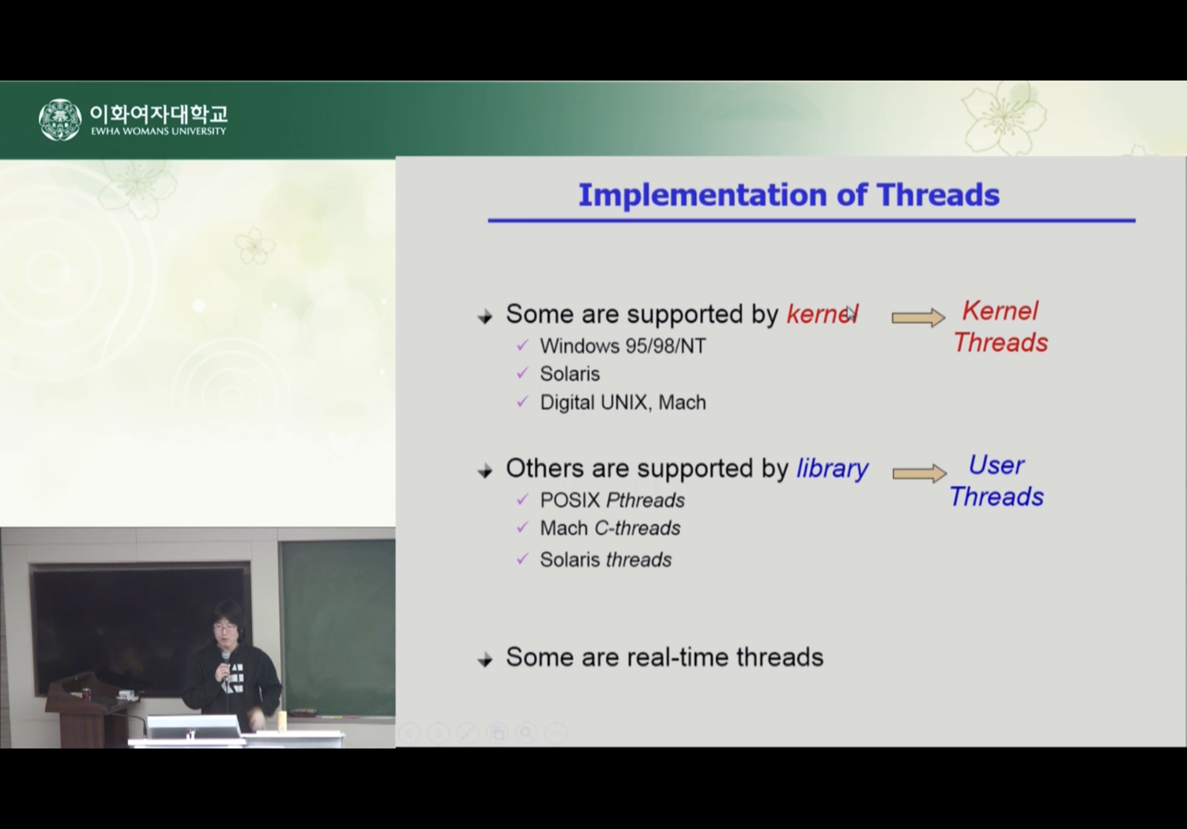 Kernel Threads는 운영체제가 스레드가 여러개 있다는 것을 알고 있음