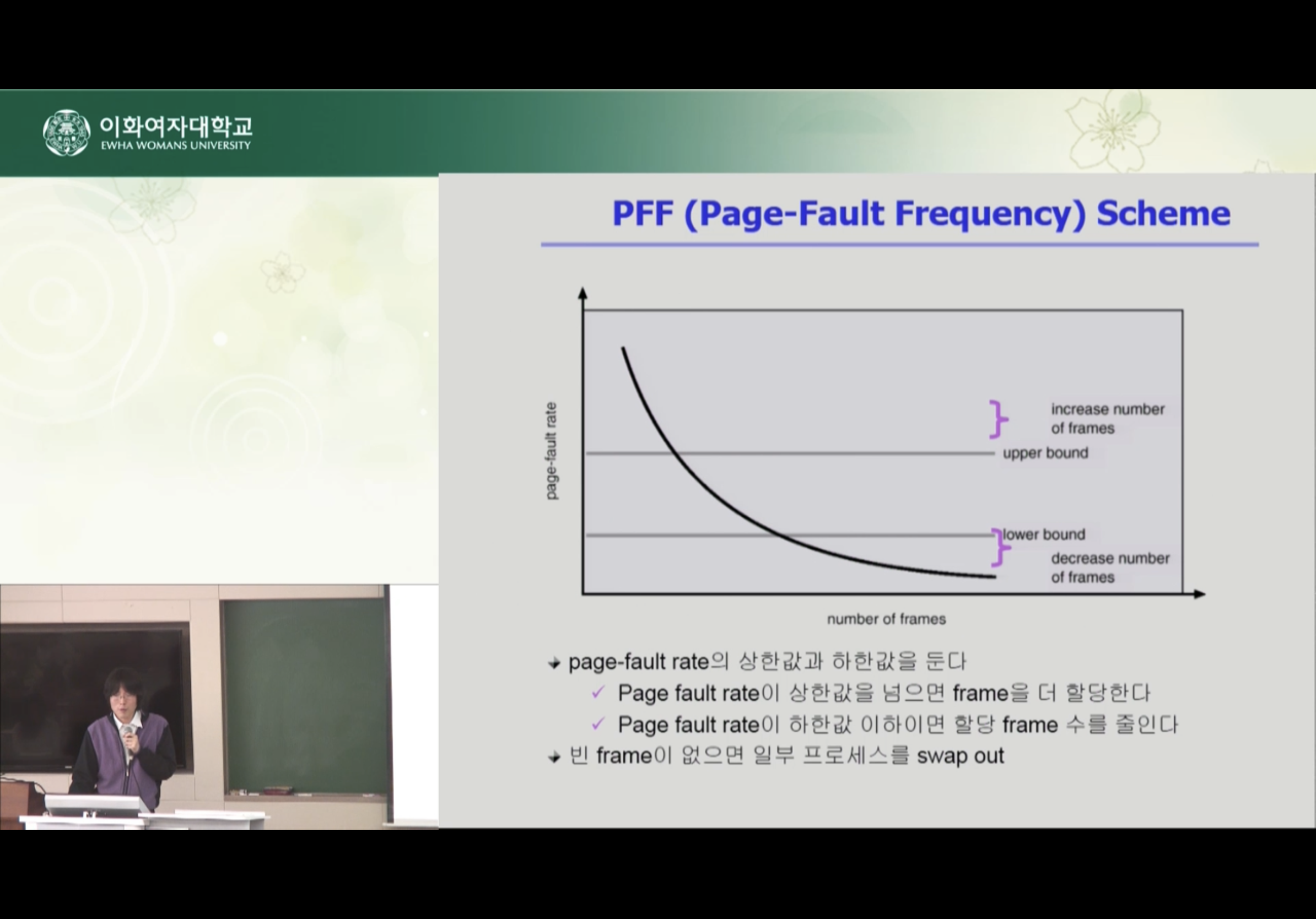 현재 시점에서 page-fault rate 어느정도인지 보고 특정 프로그램이 page fault를 얼마나 내는지 본다. 그리고 page fault를 많이 내는 프로그램에 페이지를 더 할당해준다.