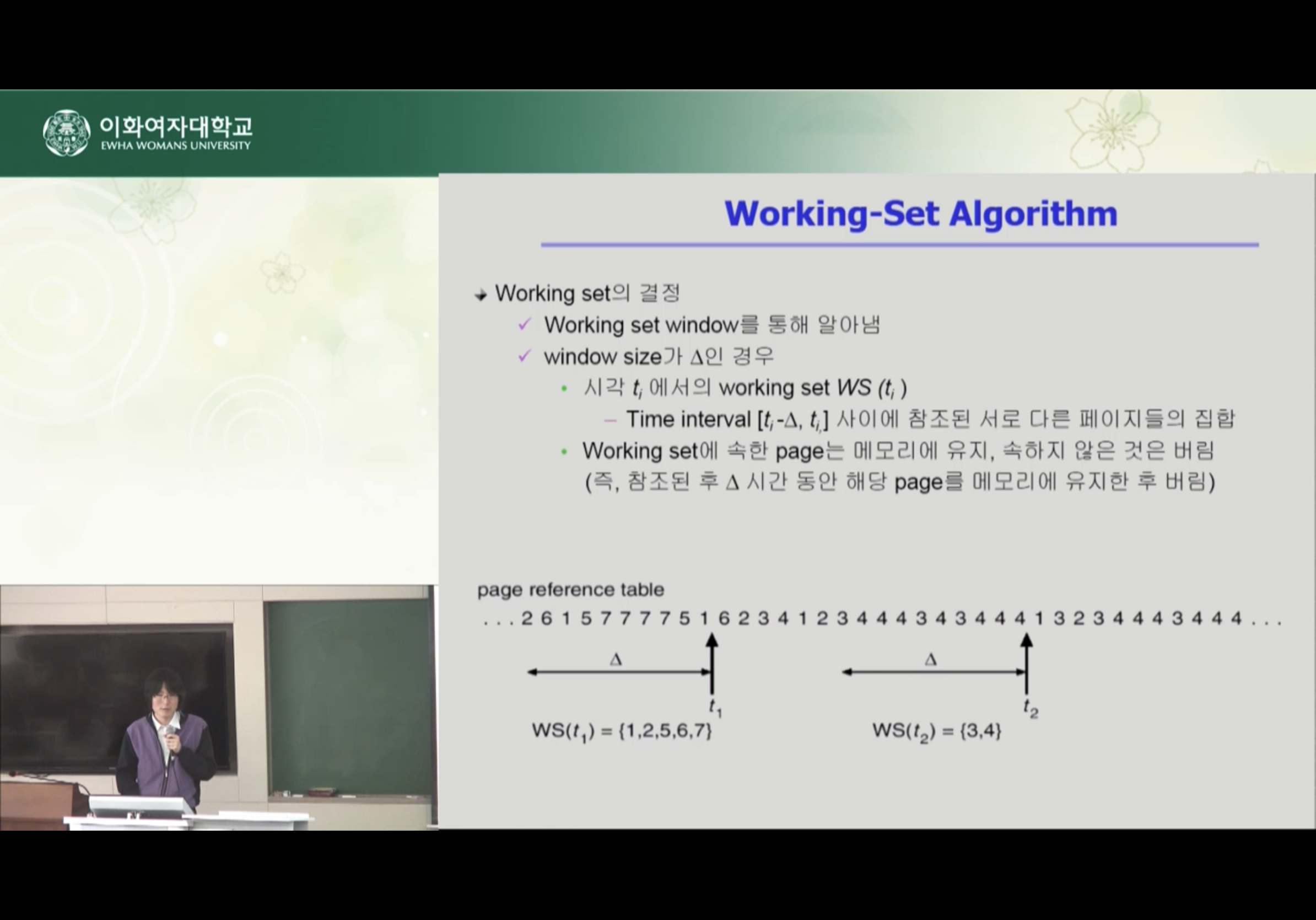 참조된 페이지들을 델타시간 동안만 유지한 후 버린다는 말과 똑같음 근데 버리려 했는데 다시 참조가 된다면 버리지 않음