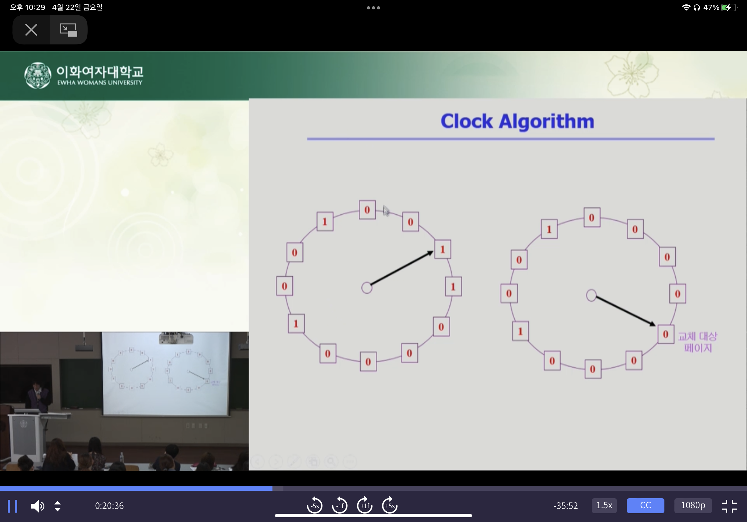 그럼 페이징 시스템에서는 리플레이스를 하기 위해 어떤 알고리즘을 사용해야하는가? Clock Algorithm