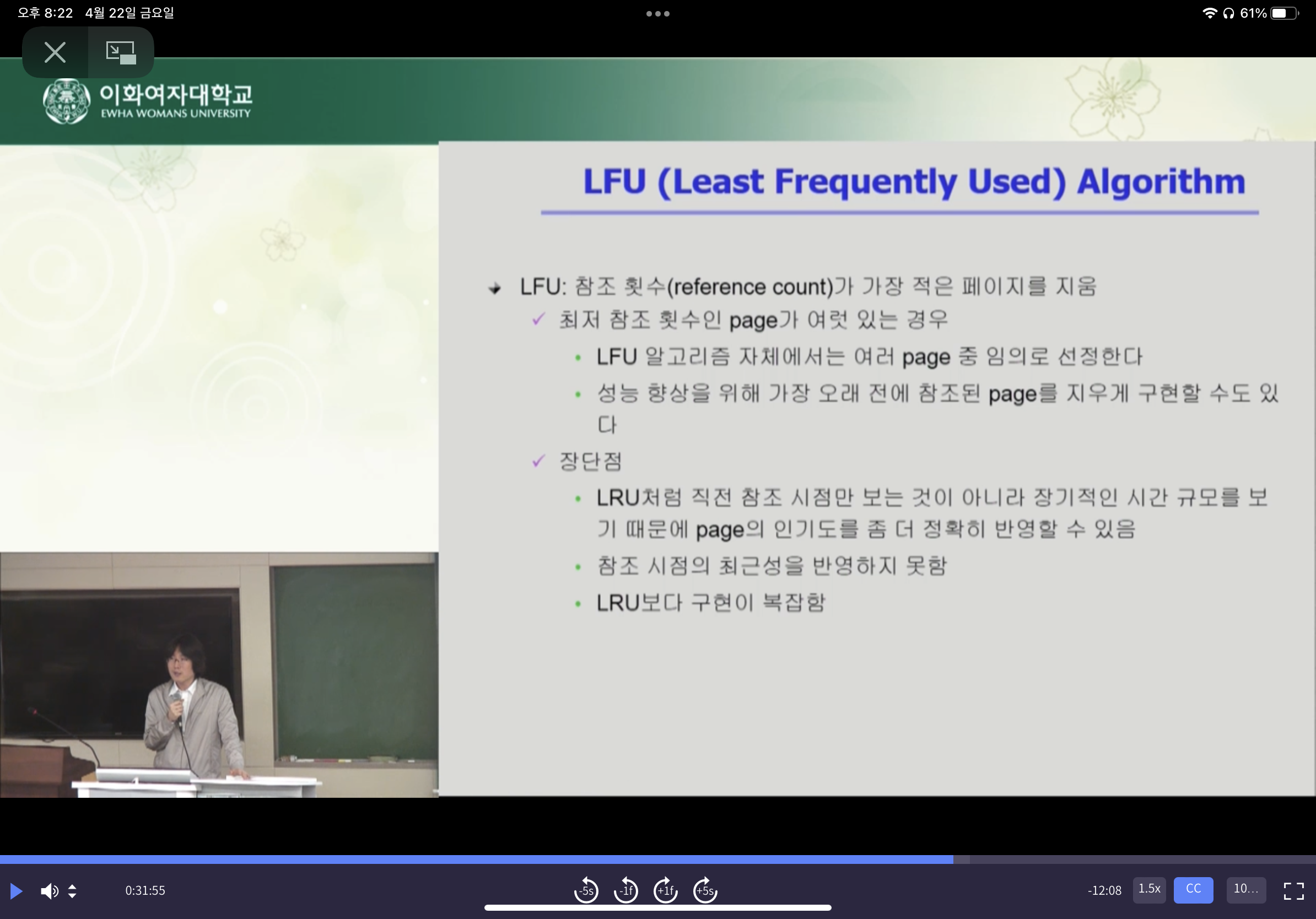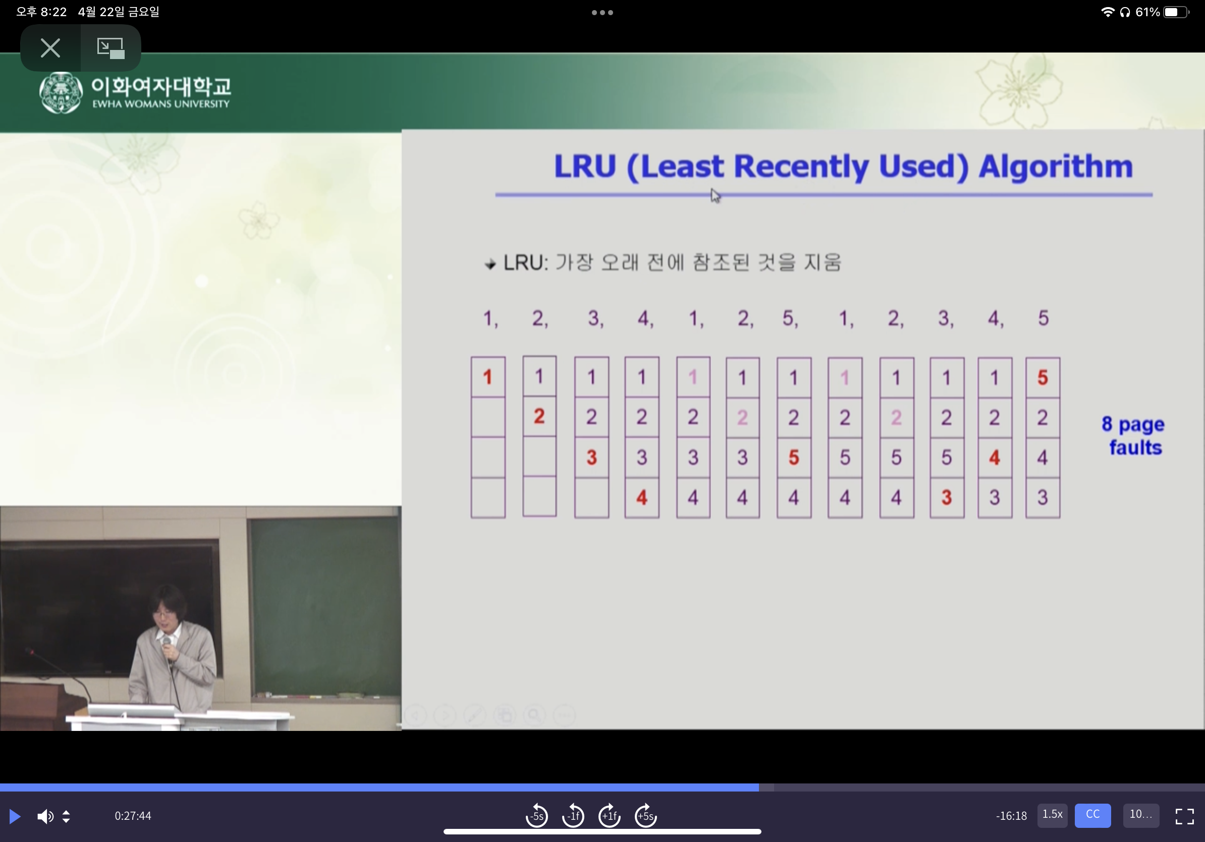 따라서 LRU LFU같은 것들을 페이징 시스템(버추얼메모리시스템)에서는 맞지 않음