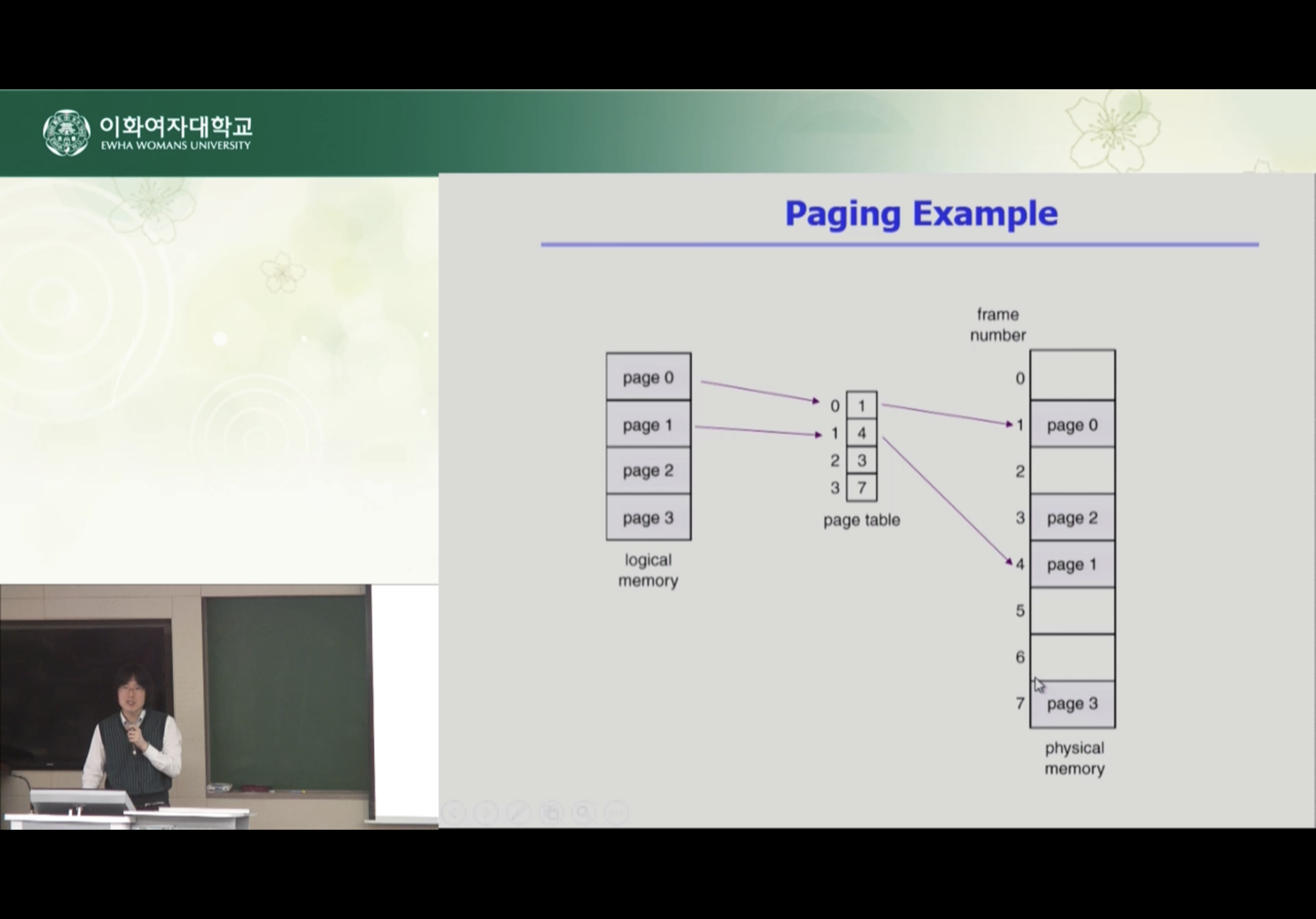 logical memory 부터 순차적으로 주소 변환이 진행되는 것이 아니라 physical address를 보고 logical address를 변경