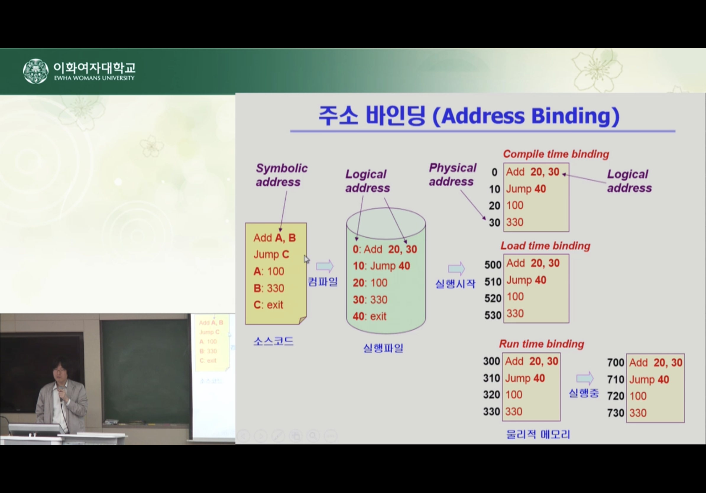 물리적인 주소로 바인딩 되는 것인 주소 변환 시점에 따라 세가지로 나누어 볼 수 있음
