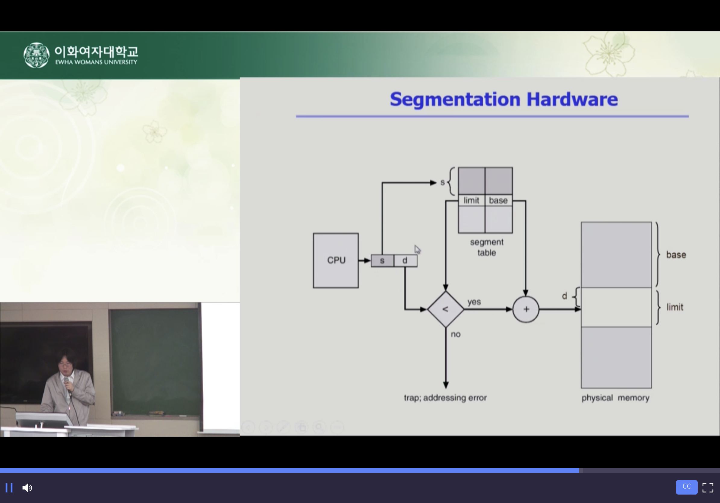 * segment는 의미 단위이기 때문에 공유(sharing)와 보안(protection)에 있어 paging보다 훨씬 효과적임