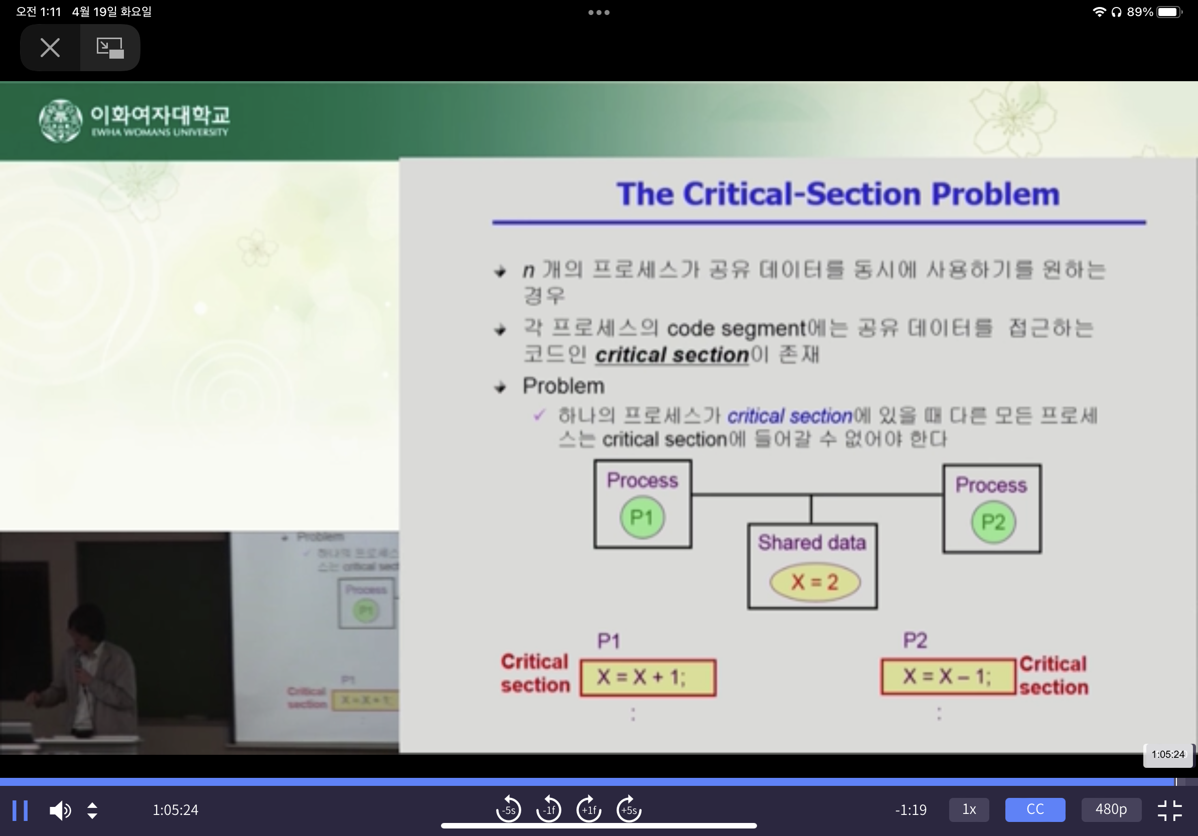 Critical-Section(임계구역)은 공유데이터를 접근하는 코드를 의미