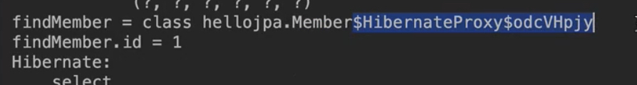 class를 조회했을 때 getReference()를 이용해 조회하면 클래스 이름 뒤에 Proxy주소가 나온다. 즉, 하이버네이트가 강제로 만든 가짜 클래스라는 얘기다.