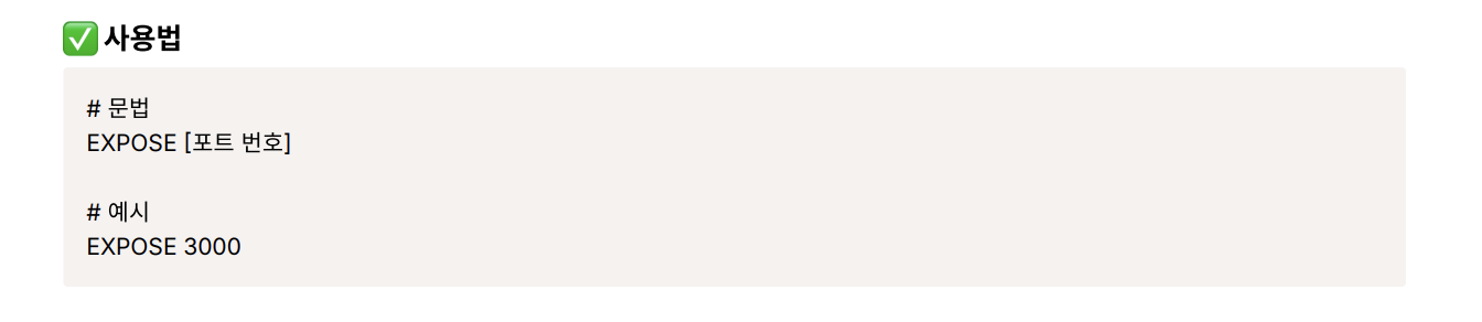 EXPOSE: 컨테이너 내부에서 사용 중인 포트를 문서화하기