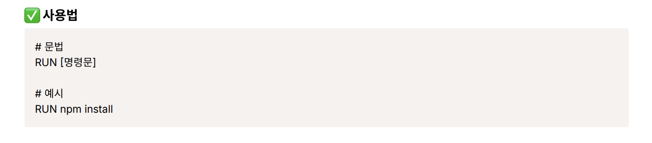 RUN: 이미지 생성 과정에서 필요한 명령어 실행