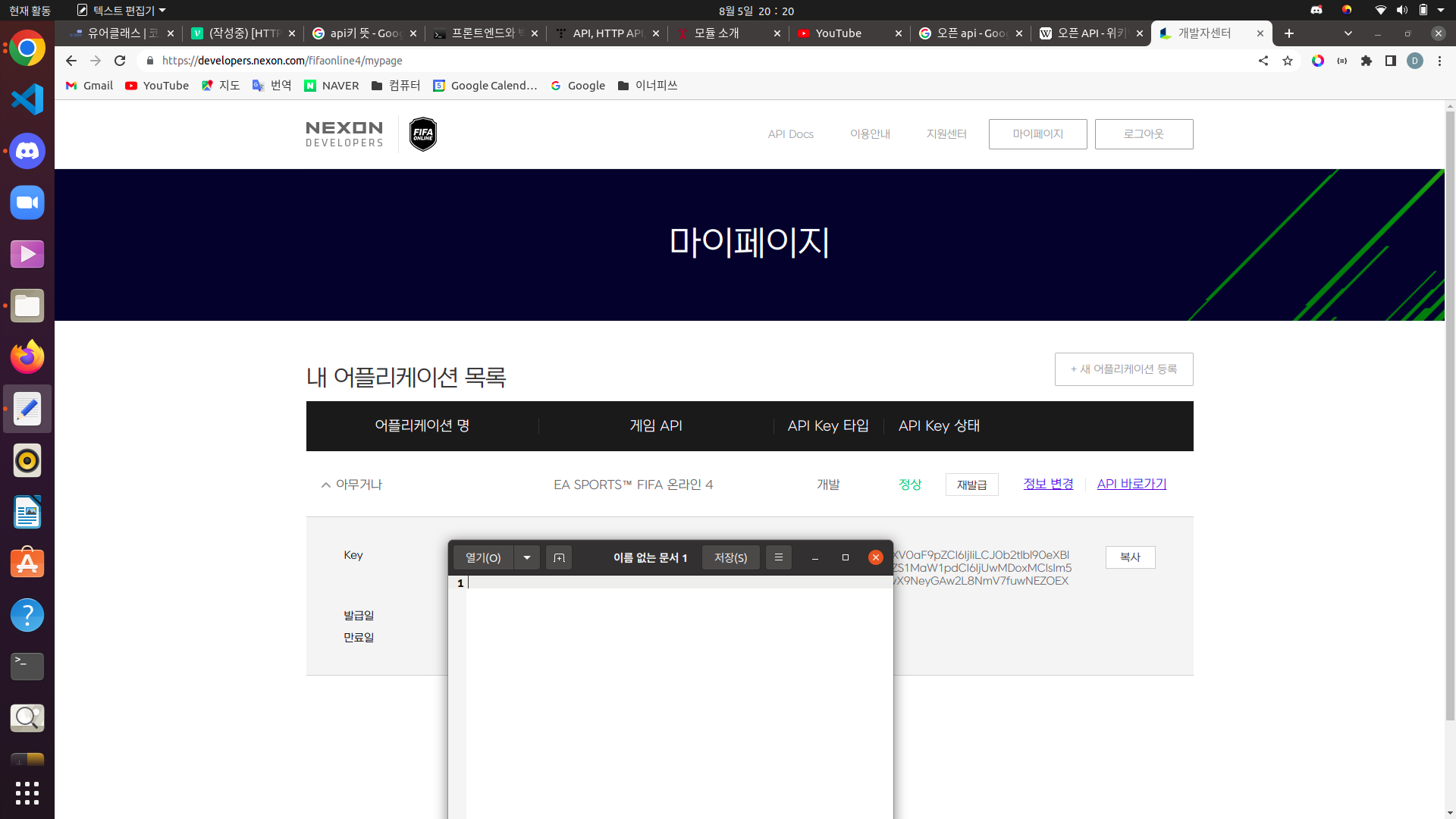 API를 이용하기 위해서는 API Key가 필요하다. API key는 서버의 문을 여는 열쇠이자 식별방법이라 할 수 있다. 서버를 운용하는 데에 비용이 발생하기 때문에 서버 입장에서 아무런 조건 없이 익명의 클라이언트에게 데이터를 제공할 의무는 없다. (가끔 API key가 필요하지 않은 경우도 있다.)
