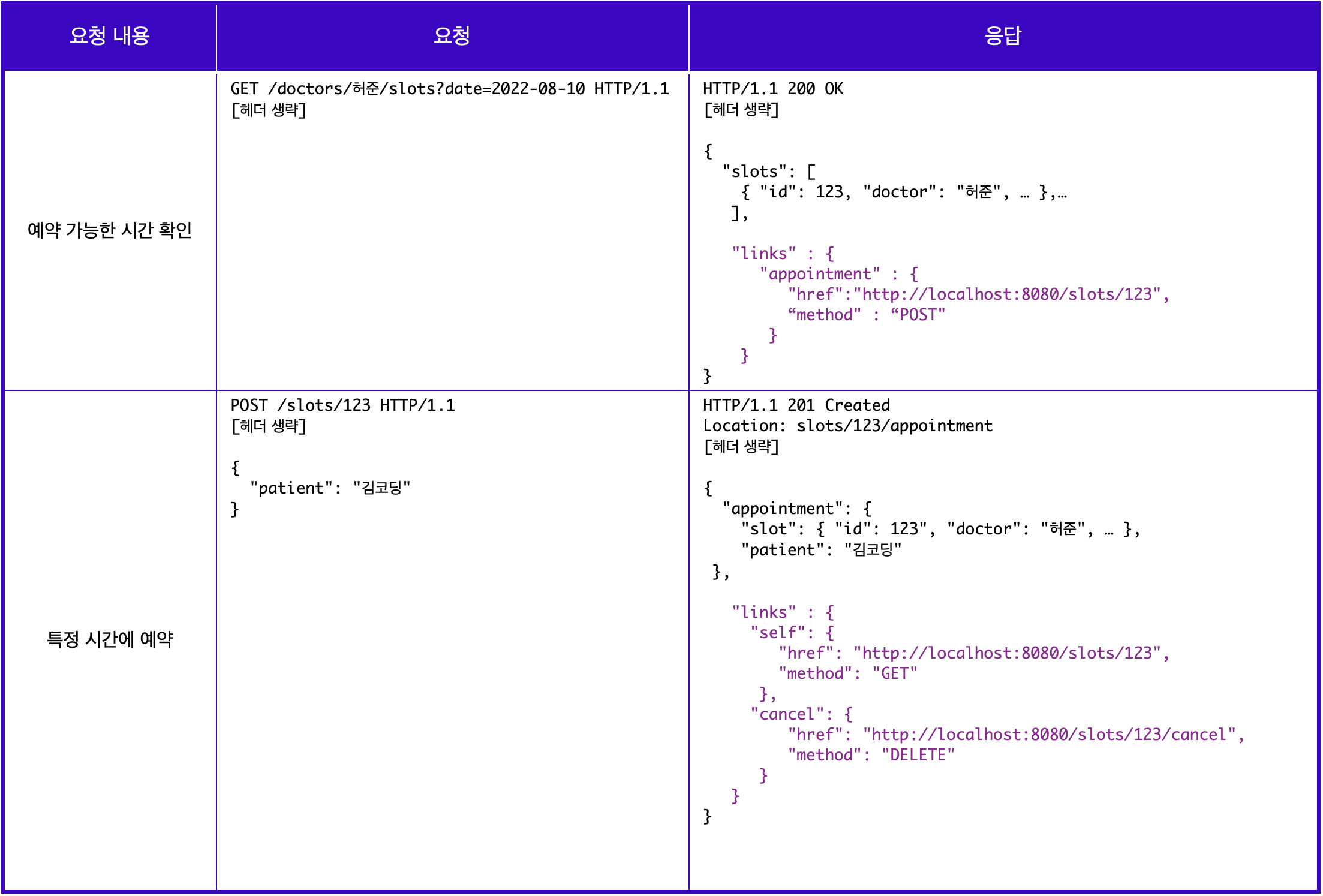 3단계의 요청은 2단계와 동일하지만, 응답에는 리소스의 URI를 포함한 링크 요소를 삽입하여 작성해야한다. 만약 병원 예약의 경우, 시간을 확인하는 요청을 받으면 그 시간대에 예약을 할 수 있는 링크를 넣거나, 예약을 완료한 경우 예약을 다시 확인할 수 있는 링크를 넣는 것이다. 이렇듯 3단계의 핵심은 응답에 새로운 기능에 접근할 수 있는 링크를 삽입하는 것이다.