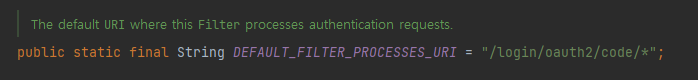 기본적으로 반환되는 uri는 OAuth2LoginAuthenticationFilter.DEFAULT_FILTER_PROCESSES_URI에 설정된 /login/oauth2/code/* 다.