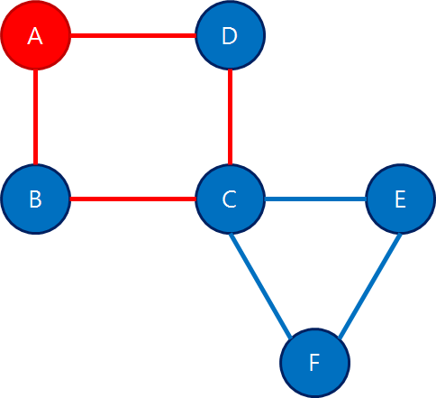 위 그래프에서 시작점을 A로 놓고 경로 [A, B, C, D, A]를 찾았다고 하자.