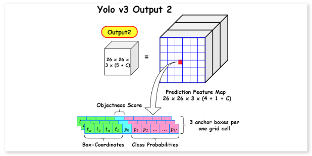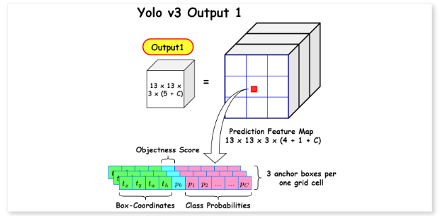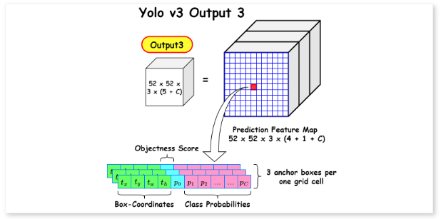 각 스케일의 마지막 계층은 3D Tensor를 예측합니다. 여기에는 경계 상자, 객체성, 클래스 예측이 인코딩 됩니다.
