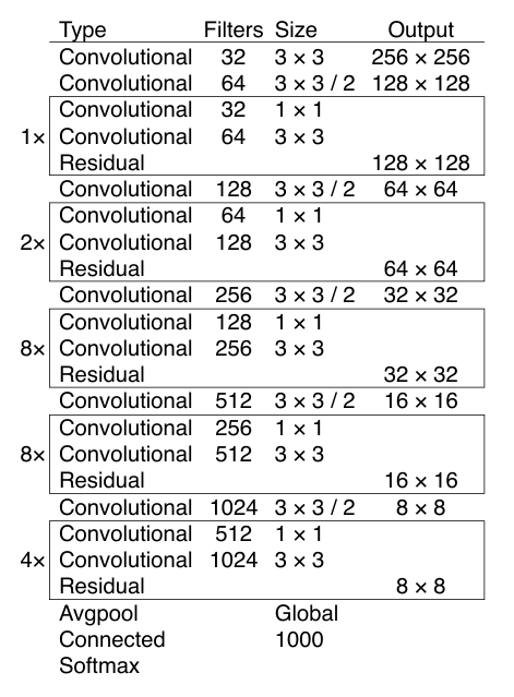 위 개념을 도입한 새로운 Network를 Darknet-53이라고 합니다.