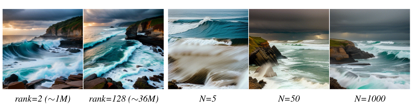 ⇒ 전체 모델을 미세 조정하여 전반적인 품질을 크게 향상시킬 수 있지만, 참조 이미지 세트가 작을 경우 catastrophic forgetting을 유발할 수 있음