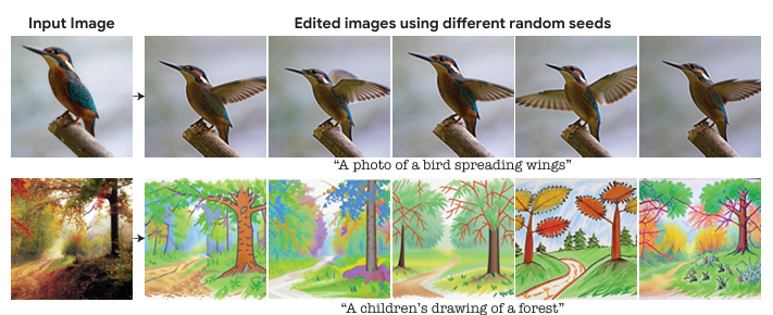 이를 위해 높은 품질의 이미지 합성이 가능한 텍스트 대 이미지 확산 모델을 활용한다. 자연어 프롬프트를 통해 텍스트와 잘 일치하는 이미지를 생성하는 이 모델을 통해 새 이미지를 합성하는 대신 실제 이미지를 편집한다.