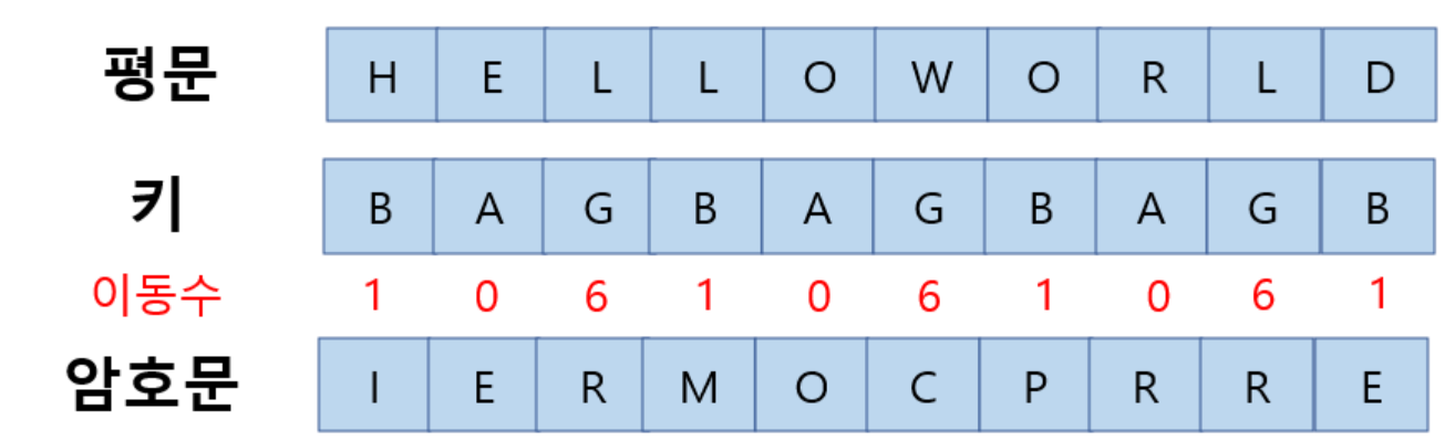 예를 들어, HELLO WORLD를 키값 BAG로 하여 비즈네르 암호를 이용하고 싶은 경우다.