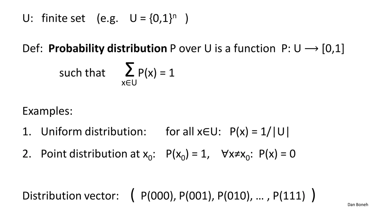 균등 분포는 집합 U에 속한 모든 x가 동일한 P(x) 값을 가지는 경우를 말합니다. {00, 01, 10, 11}의 예시에 따르면 각 원소들이 동일하게 1/4의 확률을 가지는 것이다.