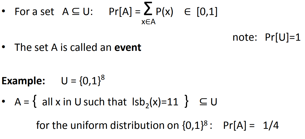 확률변수 X란, U -> V로 매핑한다. 랜덤변수는 X(y) = lsb(y)로 끝의 값 0,1만 return한다. 집합 U에서 어떠한 원소든지 무작위로 선택하더라도 V집합의 0 혹은 1에 1/2의 확률만 나오게 된다.