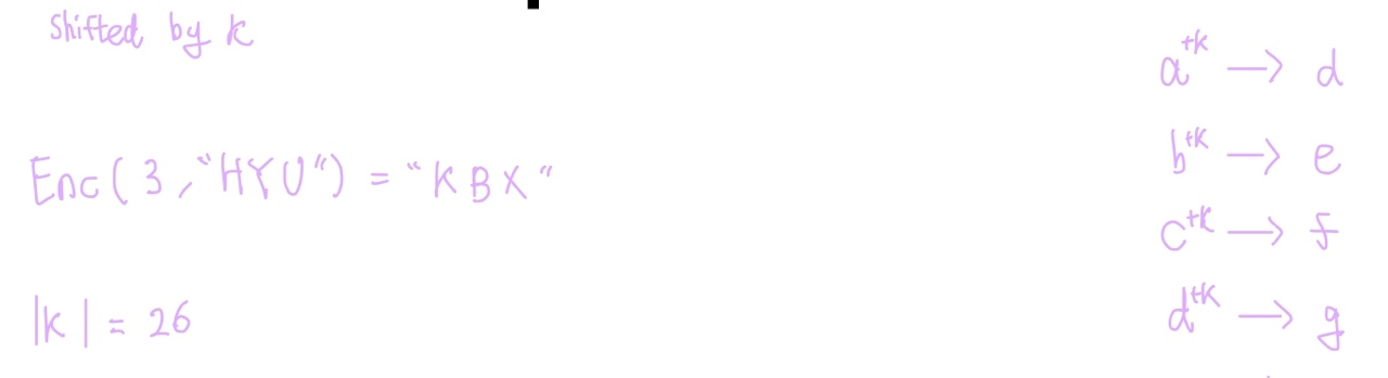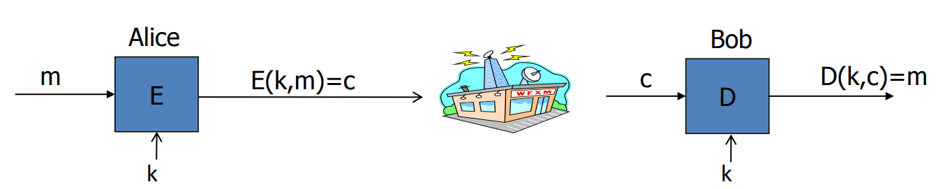 Enc: key k와 message m을 이용해 cipher text c를 만들어내는 encryption algorithm