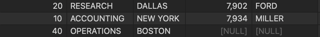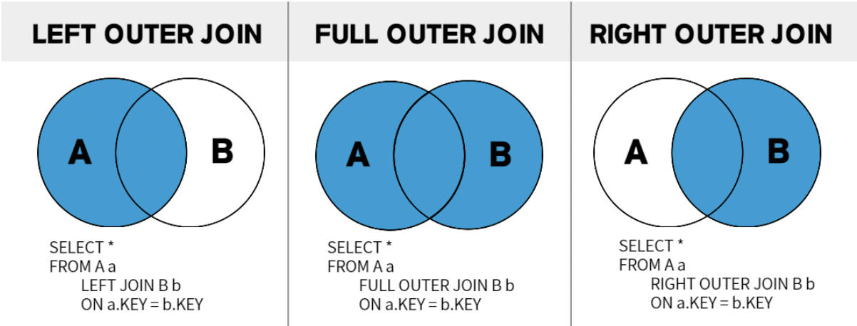 ✍ 두 테이블이 합쳐 질때 왼쪽/오른쪽을 기준으로 했느냐에 따라 기준 테이블의 것은 모두 출력되어야 한다고 이해하면 된다.