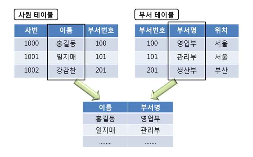 ✍ 조인은 두 개의 테이블을 연결하여 하나의 테이블처럼 출력할 때 사용한다. 두 개의 테이블을 연결해서 출력한다는 점에서 조인과 집합 연산자는 비슷하지만 집합 연산자는 두 개 이상의 SELECT 문을 통해 결과 값을 연결한 것이라면 조인은 두 개 이상의 테이블 데이터를 연결했다는 점에서 다르다.