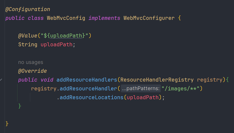 /images/**로 들어오는 URL 요청을 실제 파일 시스템이 uploadPath 경로로 매핑해준다.