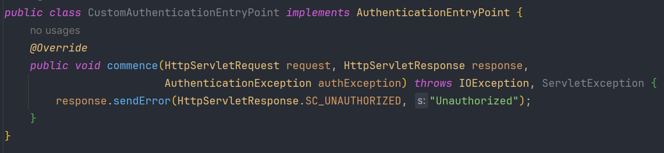 인증이 필요한 API인데 인증 정보가 없다면, Spring Security는 이 클래스를 실행하여 다음과 같이 응답